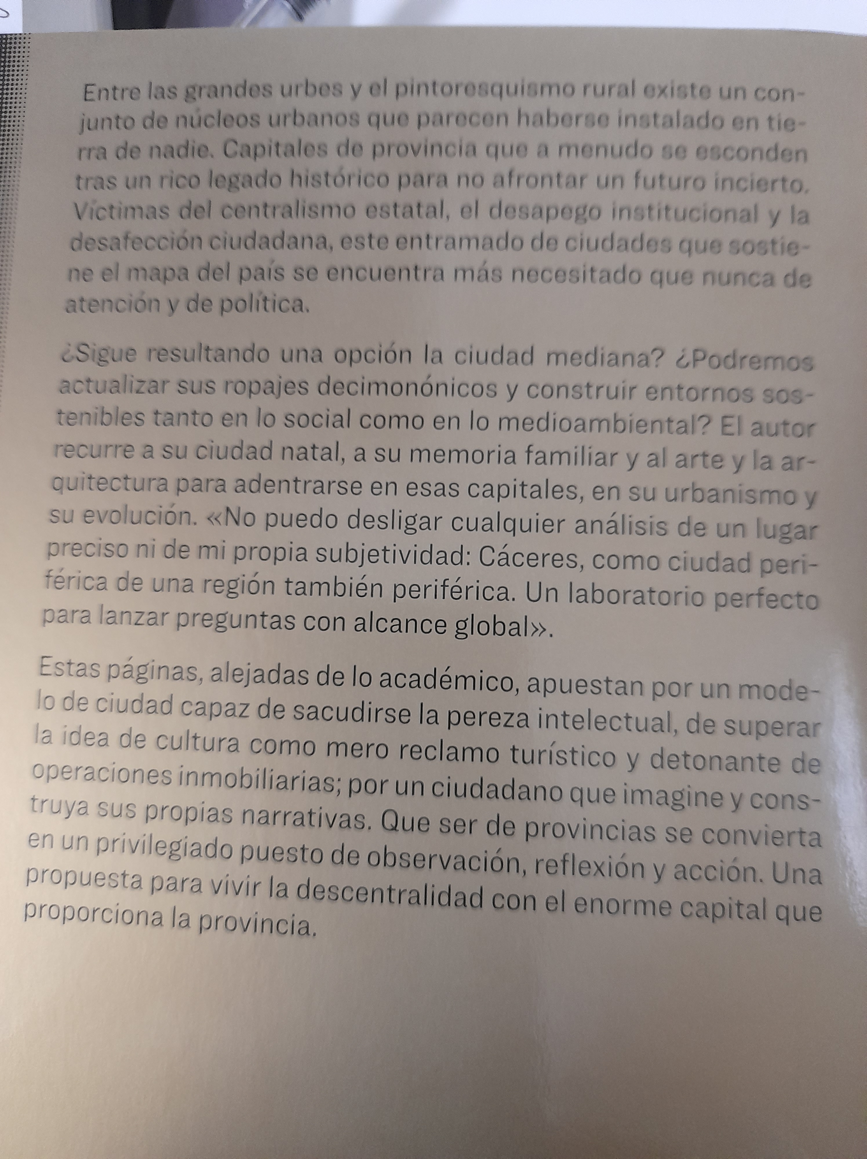 A TRAVÉS DE LA VENTANA, 8. Existen desde mucho antes de que un partido político pervirtiera su nombre, y seguirá siendo concepto central en política. Son ciudadanos también quienes «pelan» la piruleta a su hijo y con total naturalidad dejan caer el plástico al suelo, e igualmente ciudadano soy yo, que lo veo y no digo nada porque me causa rubor el sólo hecho de tener que amonestar a alguien por algo evidente. Pienso que la mujer es extranjera y que en su país seguramente tiran las cosas al suelo, y pienso que habría que decirle que aquí no, que aquí la mayoría de gente usa las papeleras. También me incomoda reñirle delante de su hija. Soy muy ciudadano caminado de noche y capando el cigarro que me acabo de fumar para, acto seguido, tirar la colilla a una papelera, pero también lo soy cuando tiro la colilla al suelo, aunque ya me afearon una vez esa conducta. Y el chico que está con sus perros sentado en un banco y arroja al suelo la lata que se acaba de beber es tan ciudadano como yo mismo cuando una vez más opto por no decir nada. De nuevo a un chico extranjero, probablemente del mismo país que la mujer de por la mañana. Habría que enseñarles, me digo, convendría corregirles y algo dentro de mí me impulsa a la necesidad de llamarles cerdos, pero creo que eso complicaría las cosas. Hoy por la tarde me veo un documental sobre Jane Jacobs, la gran visionaria, la urbanista, la política que entendía las ciudades creadas por los propios ciudadanos desde los espacios públicos los que con su uso dan vida. No paraba de pensar mientras lo veía en los columpios del paseo de La Soterraña de Olmedo y tampoco en la carretera de Medina que los amenaza, que destroza cualquier posibilidad de desarrollo social de esa parte del pueblo. Aceptaba, me ilusionaba la idea de que las ciudades más vivas sean las más variadas, con ciudadanos procedentes de culturas diferentes, capaces de aportar miradas, oficios y usos de la ciudad variopintos. Y, bueno, también se me ha ocurrido con tanta epifanía suelta y deshilachada que podía incluir en nuestro catálogo de la web un libro que nos acompaña desde hace ya varios años y que no tiene que ver nada con lo que vengo diciendo pero que, según se mire, podría tener que verlo todo: