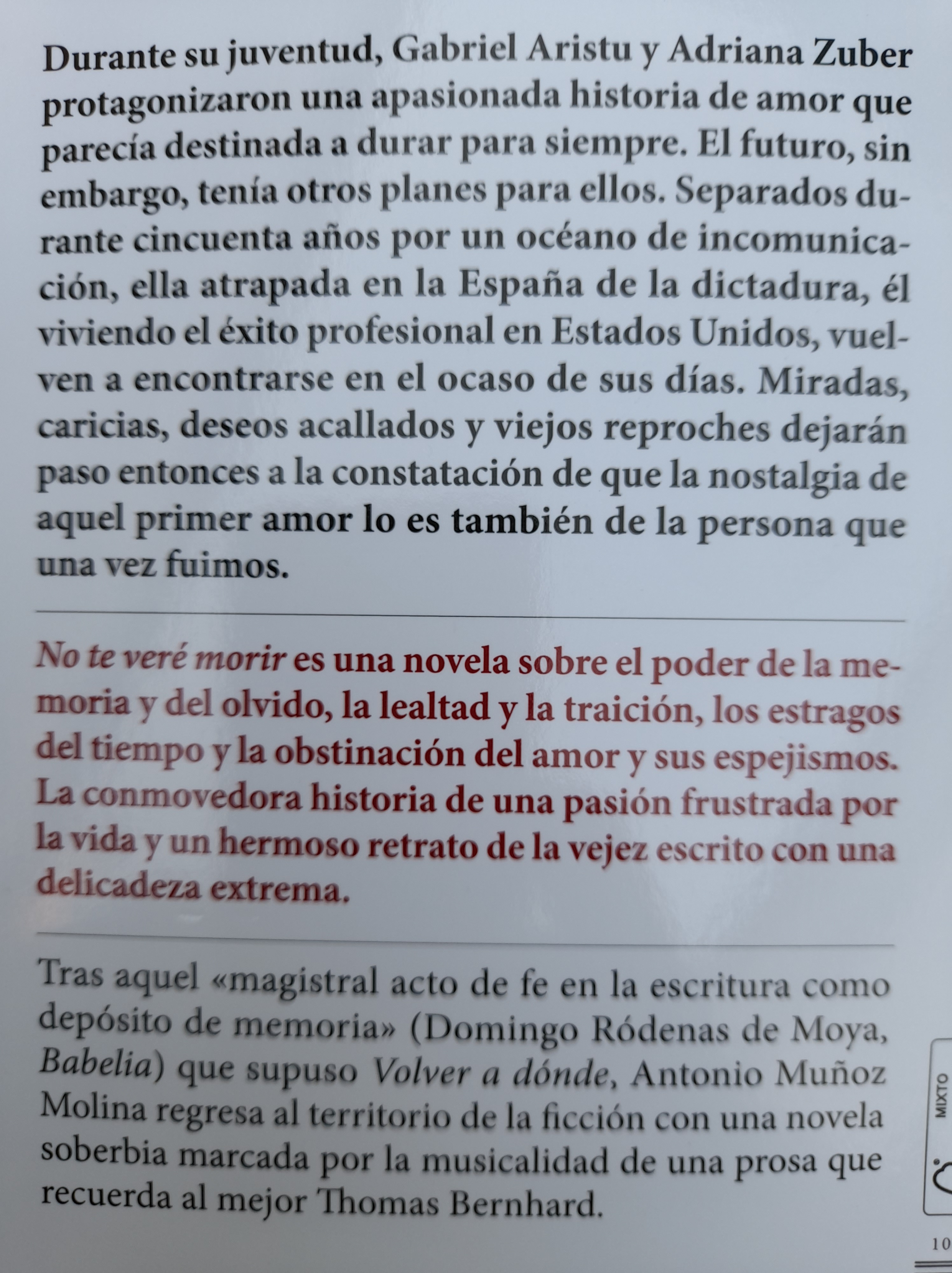 No te veré morirPor vK6MXUwxJdHaPJUxMW / septiembre 30, 2023 A Muñoz Molina, 2023. Seix Barral, 2023. 238 páginas. Pvp: 19,90 €.
