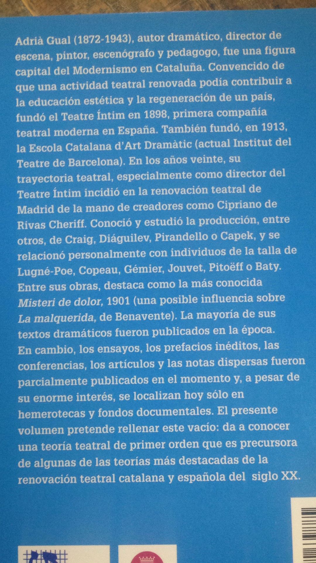 Teoría escénicaPor vK6MXUwxJdHaPJUxMW / octubre 14, 2022 Adriá Gual, entre y1894 y1922. Edición de 2016 a cargo de Carles Batlle y Enric Gallén. 406 páginas. Pvp: 23 €